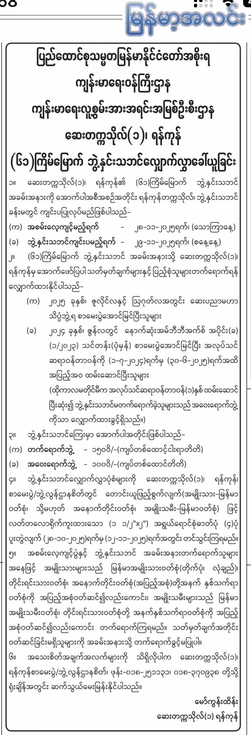 (၆၁) ကြိမ်မြောက်ဘွဲ့နှင်းသဘက်လျှောက်လွှာခေါ်ယူခြင်း၊ ဆေးတက္ကသိုလ် (၁) ရန်ကုန်